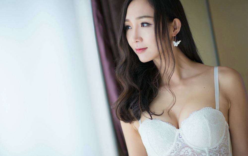 白色蕾丝内衣性感美乳诱惑女神蓓蓓maggie居家私房丰润翘臀写真